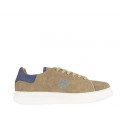 Corte realizado en lona textil con piezas en el talón de diferentes colores, forro interior textil que ofrece una excelente transpiración con plantilla extraíble, cierre mediente cordones y suela de caucho muy ligera y adherente.
