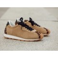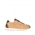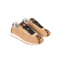 Corte realizado en piel natural combinado con pelo en estampado animal print, forro interior textil con plantilla extraíble, cierre mediante cordones negro haciendo contraaste y suela de goma muy adherente y flexible.