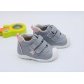 Deportivo abotinado para niña Pirufin modelo PF300-1 en color gris-rosa. El corte es de piel natural con refuerzo de goma en la puntera, el forro interior es textil con plantilla de piel piruflex, cierre mediante doble velcro muy fácil de quitar y poner, la suela es de goma con gran adherencia para evitar resbalones y gran flexibilidad.