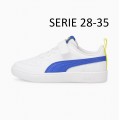 Deportivo para niño de la marca Puma Rickie AC modelo 385836 en color blanco-azul. Corte fabricado en piel sintética con forro interior textil muy transpirable, cierre mediante velcro ajustable y cordones elásticos, la suela sintética y proporciona una gran adherencia para evitar los tan temidos resbalones.