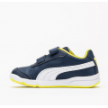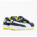 Deportivo para niño de la marca Puma Stepfleex modelo 192522-23 en color azul-amarillo. Corte fabricado en piel sintética con forro interior textil muy transpirable, cierre mediante doble velcro ajustable y suela sintética.