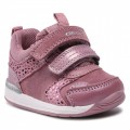 Deportivo Rishon de Geox modelo B150LA en color rosa. Corte fabricado en piel, material textil y sintético que combina diferentes acabados, forro interior textil con plantilla extraíble antibacteriana y antishock, cierre mediante doble velcro ajustable y suela de goma para evitar los resbalones con la tecnología Geox respira que garantiza una trasnpiración excelente.