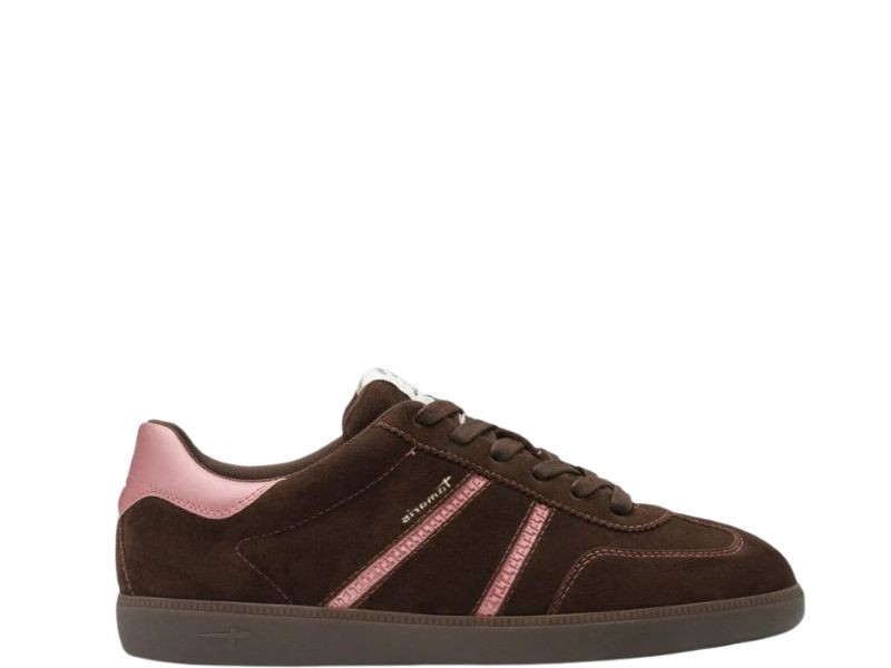 El cierre con cordones redondos jaspeados asegura un ajuste perfecto, y la suela bicolor con patín dentado en tono caramelo proporciona agarre y seguridad en cada pisada