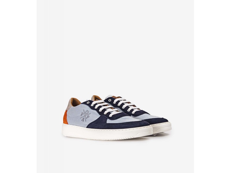 Deportivo para hombre 026 efetres de la marca Popa en color marino. Corte realizado en piel serraje y material textil con excelente transpiración, forro interior textil con plantilla de piel extraíble que te permite colocar otra en caso de ser necesario, cierre mediante cordones y suela sintética muy ligera en tono blanco.