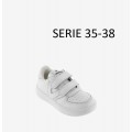 Deportivo Tiempo de Victoria modelo 1124103 en color blanco. Corte realizado en piel vegana con forro interior de material textil que favorecen la correcta transpiración, la plantilla es acolchada para mayor comodidad, cierre mediante doble velcro que a partir de la talla 36 son 3, suela de caucho termoplástico de gran adherencia.