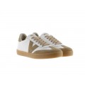 El corte combina piel y serraje con detalle de color en el talón y logo lateral de la marca, foro interior textil que ofrece una excelente transpiración con plantilla ergonómica para mayor confort, cierre mediante cordones, la suela contiene aceites vegetales en lugar de minerales en su composición, siendo así más biodegradable.