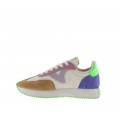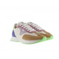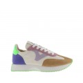 Corte realizado en nylon y piezas de material sintético efecto serraje multicolor, forro interior textil con plantilla acolchada para mayor comodidad, cierre mediante cordones, suela bicolor y patín dentado en verde para favorecer un mejor agarre.