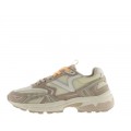 Corte realizado en malla textil y piel con diferentes colores y acabados, forro interior textil con gran transpiración y plantilla extraíble, cierre mediante cordones y suela de volumen Mythos de gran adherencia y flexibilidad con una altura de 3.5 cm.