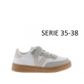 Corte realizado en material simil piel con detalle de V de Victoria y en la pieza trasera en color, forro interior textil que ofrece una excelente transpiración, cierre mediante cordones elásticos y velcro ajustable, suela de color caramelo fabricada en material sintético muy adherente y ligero.