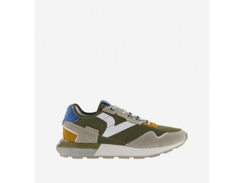 Deportivo Victoria Wing Sport 8803102 en color beige o kaki para hombre. Corte realizado en antelina y nylon con original combinación de colores, forro de microfibra muy transpirable con plantilla memory foam extraíble, cierre mediante cordones y suela de caucho natural muy ligera y adherente.
