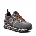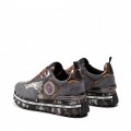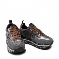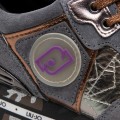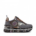 Sneaker con plataforma Maxi Wonder Liujo modelo BF1051 en color gris para mujer. El corte combina ante y material textil en gris y color estaño, el forro interior es textil proporcionando una excelente transpiración con plantilla extraíble que permite colocar otra ortopédica en caso de que sea necesario, cierre mediante cordones y plataforma de 3.5 cm con estampado militar y logotipo de la marca, la suela es de material sintético muy flexible y adherente.