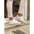Sneakers para mujer de la marca Igi&Co 1659933 en color beige-nude. Corte bajo fabricado en piel natural que combina piezas en serraje y pala picada, forro interior textil con plantilla de piel extraíble, cierre mediante cordones en tono rosa y suela sintética con gran flexibilidad y adherencia.