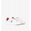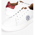 Sneakers 026 Alcazar de la marca Popa en color blanco-rojo. Corte liso realizado en piel con detalle en color rojo en el talón, forro interior textil con plantilla extraíble, cierre mediante cordones al tono y suela de material sintético muy ligera y flexible.