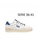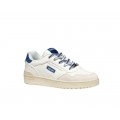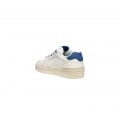 Corte realizado en material sintético y piel en color blanco con detalles en azul, forro interior textil con plantilla extraíble para una mejor limpieza e higiene, cierre mediante cordones y suela sintética muy adherente y flexible equipada con la tecnología Geox Respira.