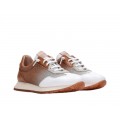 Fabricado en piel y tejidos de rejilla con 73% de poliéster reciclado, combina transpirabilidad y sostenibilidad. Su tecnología Triflow con triple almohadillado absorbe los impactos, ofreciendo una pisada suave y acolchada. Además, cuenta con una plantilla anatómica extraíble para un ajuste personalizado.