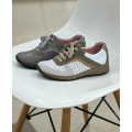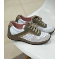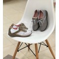 Zapato sport para mujer Suave By Leyland modelo 3925 en color gris o beige. Corte realizado en piel natural combinando piezas en diferentes tonos y acabados, forro interior de piel con plantilla anatómica extraíble para una mejor limpieza e higiene, cierre mediante cordones y su