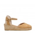 Preciosa alpargata de cuña baja copita Gaimo en color ante camel para mujer. Son un must have de este verano que no puede faltar en tu armario ya que resultan muy fáciles de combinar y sientan genial tanto con faldas y vestidos como con pantalón.