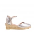 Preciosa alpargata de cuña baja copita Gaimo en color ante plata para mujer. Un imprescindible de este verano que no puede faltar en tu armario ya que resultan muy fáciles de combinar y sientan genial tanto con faldas y vestidos como con pantalón. Hechas en piel grabada metalizado plata con las que no pasarás desapercibida.