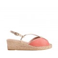 Alpargata de cuña Calima de la marca Gaimo en color melón. Con diseño de puntera abierta y destalonada ofrece un agradable confort además esta alpargata está fabricada con materiales de primera calidad de forma artesanal.