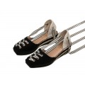 Descubre las alpargatas Virgine de Gaimo en color negro, un modelo que combina a la perfección estilo clásico, delicadeza y comodidad. Su diseño cerrado aporta elegancia, mientras que las cintas en contraste que se anudan al tobillo añaden un toque femenino y sofisticado.