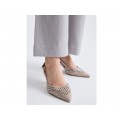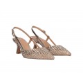El zapato de tacón Alisa-410 de Exe en color oro, de punta afilada eleva la elegancia a otro nivel con un delicado acabado de destellos dorados que reflejan la luz en cada movimiento. Su diseño realza la silueta del pie, aportando un aire sofisticado y femenino imposible de ignorar.
