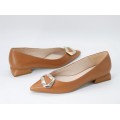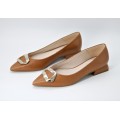 Bailarina para mujer Marian modelo 8306 en color cuero. Corte realizado en piel natural muy suave que ofrece un gran confort con detalle de chapa en la pala, forro interior de piel con plantilla soft gel muy cómoda, la suela es sintética con un tacón bajo imitación madera de 2 cm. Fabricación española.