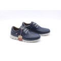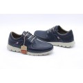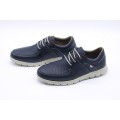Zapato de piel On Foot modelo 2004 en color marino para hombre. Corte realizado en piel natural con forro interior de piel y plantilla extraíble para una mejor limpieza e higiene, cierre mediante cordones y suela de goma muy ligera y flexible.