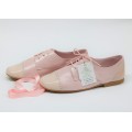 Blucher para niña Pirufin modelo 11358 en color rosa o beige. Corte realizado en piel con acabado afelpado brillante, la puntera y talón son de charol, forro interior de piel natural con plantilla anatómica libre de productos tóxicos, cierre mediante cordón y suela sintética muy flexible que ayuda a preservar el movimiento natural del pie.