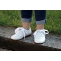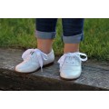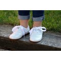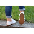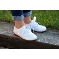 Blucher satinado para niña Beberlis modelo 19288 en color blanco. Corte realizado en piel con acabado satinado y picados en la pala, forro interior de piel natural muy suave y transpirable, cierre mediante cordón de raso y suela de goma flexible y muy adherente. Fabricación española.