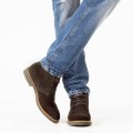 Botín para hombre de la marca Panama Jack modelo Gunter en color marino o marrón. Corte liso realizado en piel serraje waterproof que repele el agua, forro interior de piel natural con plantilla extraíble para una mejor limpieza e higiene, cierre mediante cordones al tono y suela flexible, ligera y adherente.