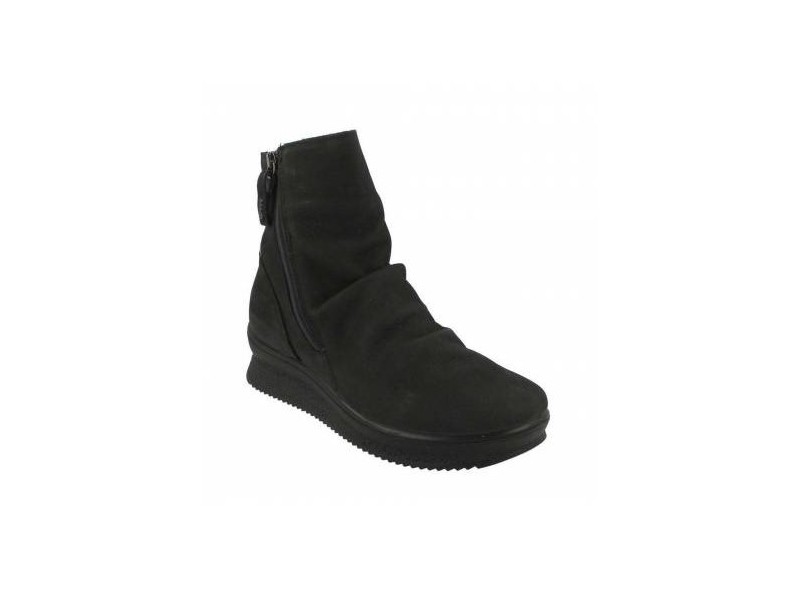 Botín de piel nobuck Igi&co modelo 6156200 en color negro. Corte realizado en piel nobuck con fruncido en la pala y altura de caña de 18 cm, forro interior de Gore-Tex que te protege de agua a la vez que proporciona una excelente transpiración, plantilla de piel extraíble, cierre mediante cremallera lateral y suela sintética ligera y adherente.