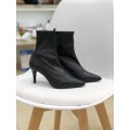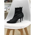 Botín para vestir de Calzados Marian modelo 12402 en color negro para mujer. Corte realizado en piel y material textil con cuello elástico para un perfecto ajuste a la pierna y puntera afilada, forro interior de piel para una excelente transpiración, tacón fino de 7.5 cm y suela sintética de excelente adherencia, flexible y muy ligera.