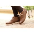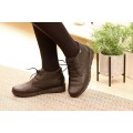 Botín plano de piel On Foot para mujer modelo 70000 en color marrón o negro. Corte liso, realizado en piel natural sin costuras que se adapta al pie a la perfección, forro interior textil con plantilla extraíble acolchada para una mejor limpieza e higiene, cierre mediante cordones y suela de goma con gran adherencia y flexibilidad.