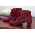 Botín de tacón ancho ROLDAN modelo 3432 en color negro, rioja o verde para mujer. Realizado en ante con un corte liso, el cierre es mediante cordonera con lazo de terciopelo, el interior es de piel natural que aporta suavidad y garantiza transpiración, la suela es de material sintético. ¡Ya disponible en nuestra tienda online!