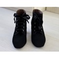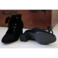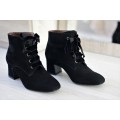 Elegante botín hecho en ante de la marca de fabricación española ROLDAN modelo 3432 disponible en negro, rioja o verde para mujer. Con un estilo clásico,elegante y un tacón ancho cómodo fácil de llevar. Un botín con el que no pasarás desapercibida.