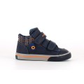Botita para niño Pablosky modelo 958323 en color marino, realizada en piel con puntera reforzada, forro interior textil con plantilla de piel extraíble, cierre mediante dos velcros garantizando la correcta sujección de cualquier pie y suela de goma flexible y adherente.