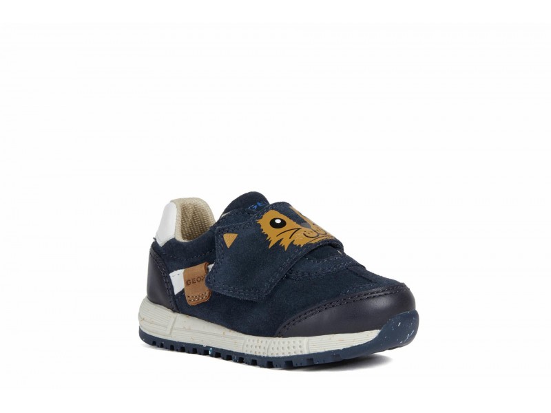 Deportivo para niño Alben de Geox modelo B043CE en color marino decorado con motivos animales. Un deportivo que proporciona un buen ajuste y facilita los primeros pasos. Dispone de cierre de velcro que facilitará mucho el momento de quitar y poner y a su vez les proporciona autonomía. No te quedes sin este divertido deportivo de Geox que podrás comprar en nuestra tienda a un precio increíble.