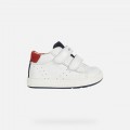 Deportivo para niño Geox modelo B044DD en color blanco o azul. Un zapato pensado en los primeros pasos, realizado en piel napa muy flexible, con cierre de velcro que proporciona el ajuste necesario. Es un zapato ideal para el día a día, ya que cubre todas las necesidades que el peque necesita para caminar.