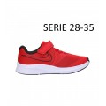 Deportivo Nike Star Runner modelo AT1801 en color rojo. Corte realizado en malla muy transpirable, forro interior textil con plantilla extraíble, media suela suave con buena absorción de impactos, cierre mediante velcro y cordones elásticos la suela es de goma muy flexible y adherente.