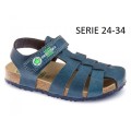 Sandalia para niño Pablosky modelo 596420 en color marino. Corte realizado en material textil con la punta cerrada y talón abierto, forro interior textil muy transpirable, plantilla anatómica súper flexible y absorbente, cierre mediante velcro ajustable fácil de poner y sacar, suela de goma flexible y muy adherente para evitar resbalones.