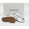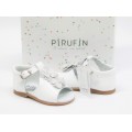 Te presentamos esta preciosa sandalia de charol Pirufin modelo 11838 en color blanco para niña. Un modelo con talón cerrado y forro interior de piel que asegura una correcta transpiración incluso en los días más calurosos. Proporciona un buen ajuste al pie para facilitar los primeros pasos. Fabricación española.