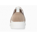 Sneakers Mephisto modelo Imanie en color beige-blanco. Corte realizado en piel y piel nobuck con una anchura cómoda, forro interior de piel con plantilla extraíble muy tranpirable gracias a la tecnología Soft-Air, cierre mediante cordones al tono, suela sintética muy ligera con shock absorber para amortiguar la pisada. Un sneakers perfecto para los pies más delicados.