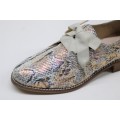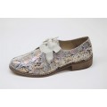 Precioso blucher de tacón bajo Salonisimos modelo Yair en color celeste o salmón. Corte realizado en piel con acabado animal print haciendo aguas, forro interior de piel muy transpirable cin cierrre mediante lazo de tela. ¡No te quedes sin el tuyo!