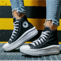 Zapatilla Converse Chuck Taylor All Star Move High Top modelo 568497C en color negro para mujer. Corte realizado en lona con parche de la marca en el tobillo, forro interior textil muy transpirable, plataforma llamativa y explosiva sin tanto peso que te da un toque estiloso.