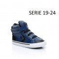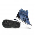 Bota de piel Converse modelo 762011C en color marino  ara niño, corte realizado en piel con símbolo de Converse en el lateral y puntera reforzada, forro interior textil, cierre mediante cordones elásticos y velcro ajustable, suela de goma flexible y antideslizante.