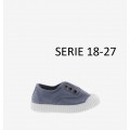 Zapatilla inglesa de lona Victoria modelo 06627 disponible en varios colores para niño y niña. Corte realizado en algodón ecológico con plantilla extraíble acolchada de poliuretano cubierta con tejido de algodón, dispone de elástico en el copete con suela de goma y refuerzo en la puntera.