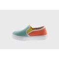 Zapatilla Juegos Slip On de Victoria modelo 250162 en color menta o marino. Fabricadas en lona de algodón orgánico multicolor con elásticos laterales y suela color blanco y ribete crudo de goma muy flexible y adherente.