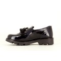 Zapato colegial Pablosky modelo 854429 en color marino para niña. El corte es en piel charol con detalle de fleco con borlas en el copete, dispone de dos elásticos laterales que facilitan el momento de poner y sacar el zapato y a su vez proporcionan la correcta sujeción al pie, forro y plantilla interior de piel muy transpirable que asegura la temperatura correcta en el interior y los pies siempre secos, suela de goma muy adherente y flexible.