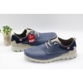 Zapato de piel On Foot modelo 2000 en color marino o cuero para hombre. Corte realizado en piel natural con forro interior de piel y plantilla extraíble para una mejor limpieza e higiene, cierre mediante cordones elásticos y suela de goma muy ligera y flexible.