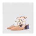 Zapato destalonado en charol Lodi modelo Dolmen multicolor. Corte realizado en charol con elegante combinación de colores y detalle de tachuelas, forro interior de piel con platilla newgel para mayor comodidad al caminar, cierre mediante doble hebilla y tacón ancho de 6.5 cm de altura con suela sintética antideslizante muy ligera.